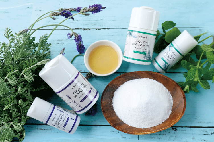 グリーンノートのエチケットDeoパウダーがまさにそうした天然の効果で生まれた商品なんです。