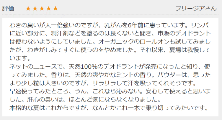 「強いケミカルの成分を、なるべく敏感な脇に使いたくない」「合成香料の強い香りが体質に合わない」