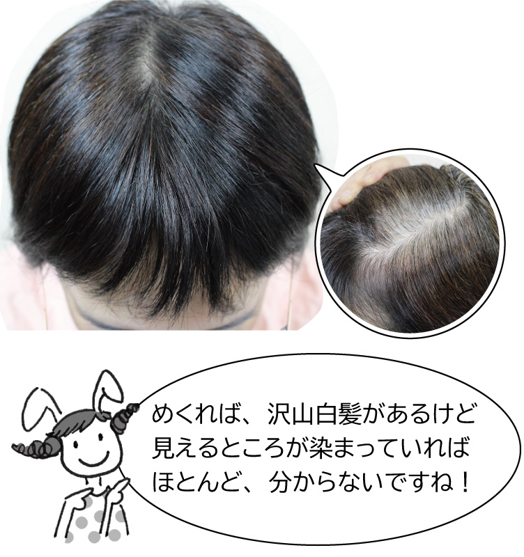 かきあげた時には、こんなに白髪があるけれど、ぱっと見では分かりませんよね?