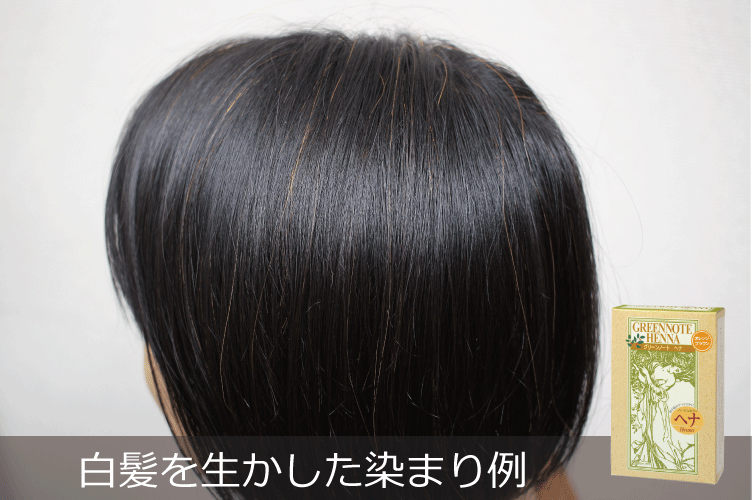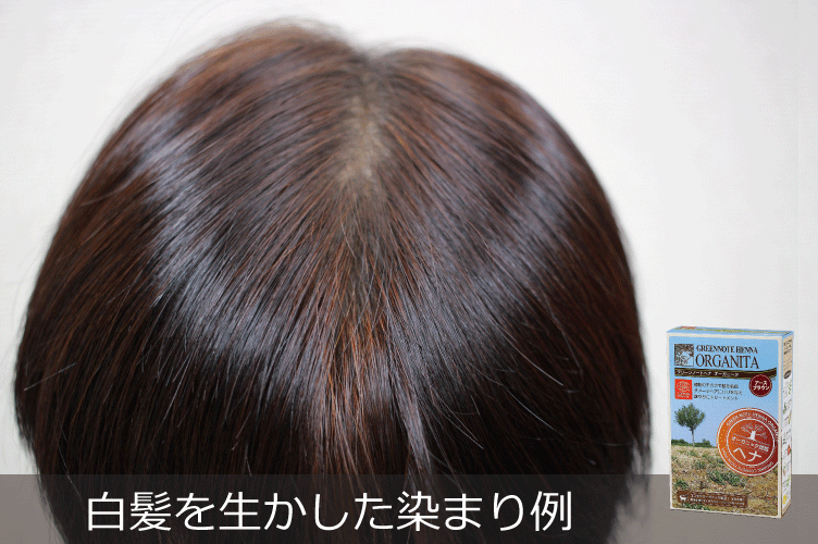 ほとんどの市販の白髪染め剤がベタ染めで染まるのに対し、ヘナは白髪を生かした染まり方をします。