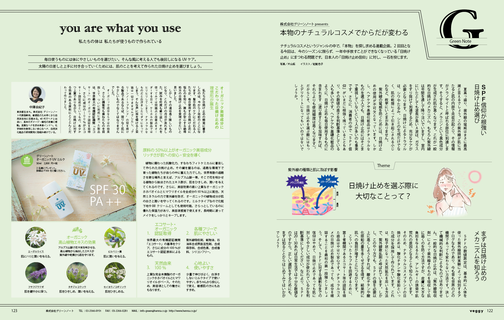 『common&sence』(河出書房新書)の特集で、オーガニックUVミルクが掲載されました。