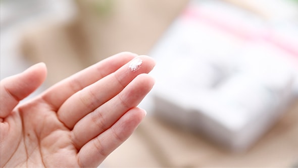手のひらに大豆大ほどの量(約0.1グラム)のパウダーをとり、気になる部分に直接お塗りください。