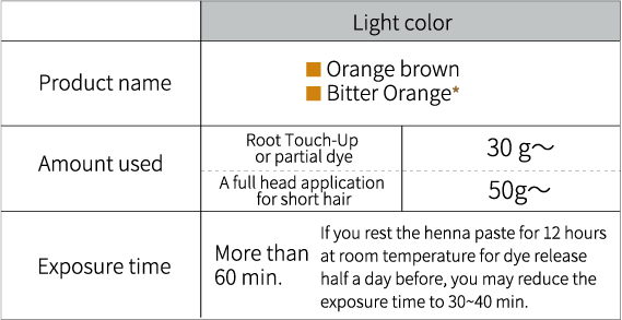 In the case of applying Orange Brown or Bitter Orange, you can rub henna paste on your scalp with your fingers.