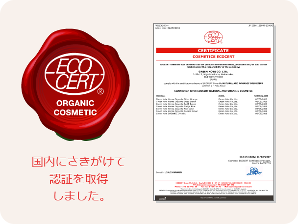 栽培方法、自然由来の原料や製造工程、環境への配慮にいたるまで厳しい基準を満たした製品に対して認定されます。