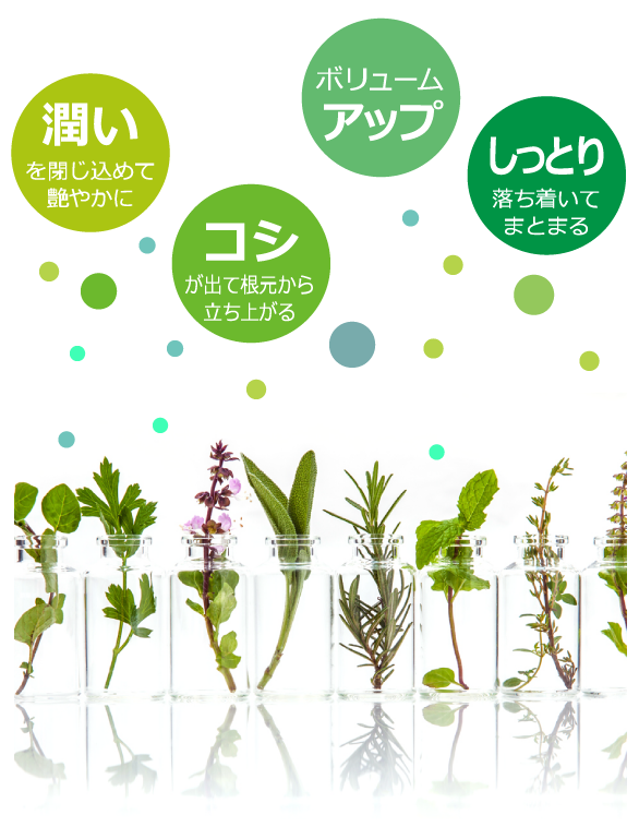 厳選品質のハーブ成分が、傷んだ髪に潤いを与え、ダメージを補修します。染めるたびにツヤ・ハリアップ。髪質に悩む方に特におすすめです。