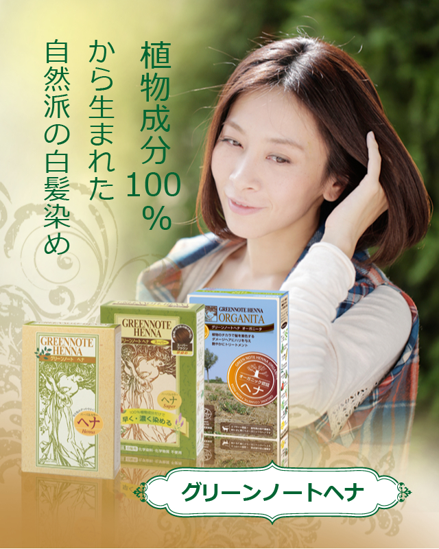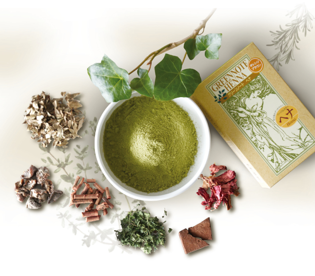 グリーンノートヘナが定評があるのは、その染まりの良さと色持ちの良さです。通常は、ヘナとインディゴのミックスだけでしか出せなかったブラウンの色味。インドの伝統ハーブを様々に加え、その相乗効果の応用によって、強い染色力を生み出す技術に辿りつきました。