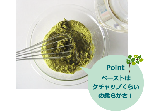 ぬるま湯をすこしづつ加えながら、よくかき混ぜます。ダマのない滑らかなケチャップくらいの柔らかさになったらOKです。