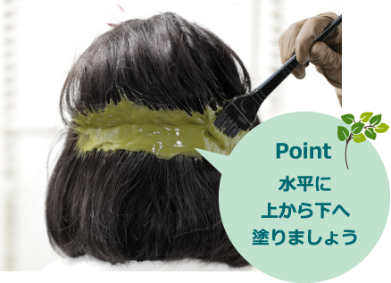 ハケを使い、根元が隠れる位にたっぷりとのせ、白髪の部分のみに塗っていきます。