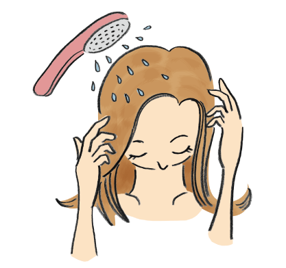 お湯のみですすぎ洗いをし、軽く汚れを落とします。シャンプーの洗浄力をより発揮できる状態に。