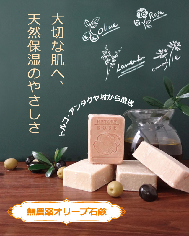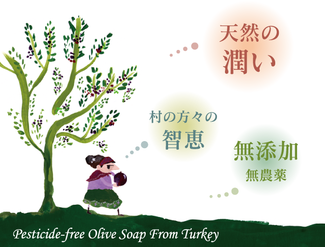 つらい敏感肌や乾燥肌の助けとなる、天然の保湿力にすぐれた石けんを作りたい。そんな想いから、オリーブの産地として有名なトルコの農村との共同製作で生まれました。