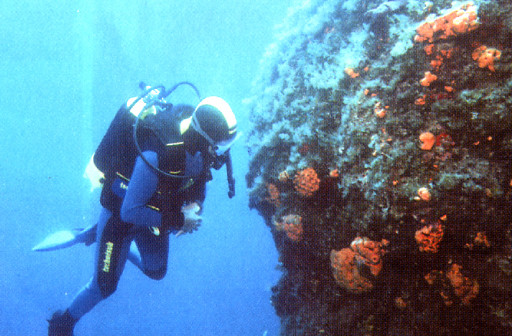 天然海綿は、海中の岩などに住む多細胞生物の一種。光がたっぷり差す、栄養豊富な紺碧の海で、魚やサンゴたちと共生します。