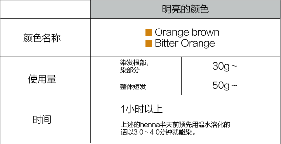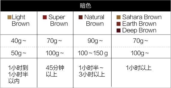 ※特别是第一次发质比较硬、比较粗的发质,染发粉量要比表示的量多・放置时间要长。